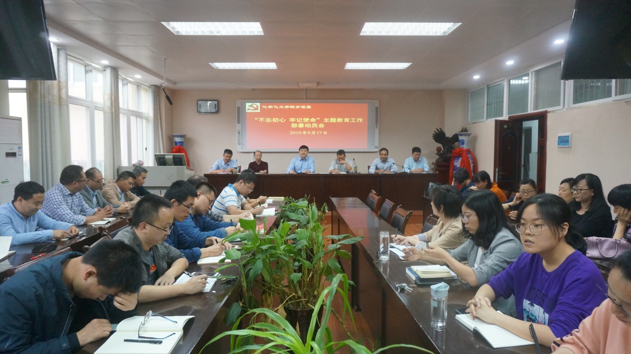 按照学校党委安排,2019年9月17日下午,英国正版365官网党委在化学实验楼407会议室开展了“不忘初心 牢记使命”主题教育学习动员。英国正版365官网全体党员、教职工参加会议。学院党委书记郭鹏主持会议。