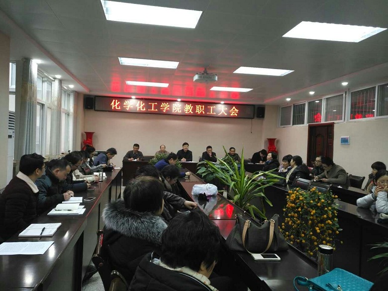2017年1月10日下午,英国正版365官网2016年度教职工大会在化学实验楼407会议室隆重召开。化院全体教职工参加了会议,大会由党委书记郭鹏主持。