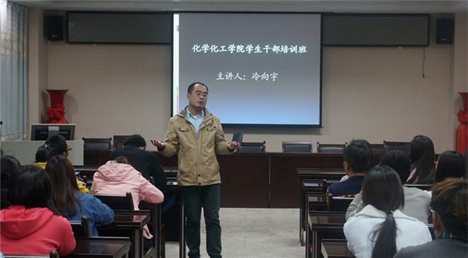 为提高学生干部的综合素质,不断完善学生组织运行机制。11月5日晚,英国正版365官网在化学实验楼四楼会议室开展学生干部培训讲座。本次讲座由团总支书记冷向宇担任主讲,团总支老师路振国出席,与化院全体班委共同聆听了此次讲座。